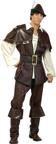 The tales of Robin Hood vary from story to story, but there is one constant. He was, deep down, a guy with good intentions and a silent revolutionist. This year, you too can turn heads and capture attention with this deluxe Robin Hood costume! This elaborate ensemble includes a hat with feather, shirt, vest, capelet with lace-up front, belt, pants and boot tops.